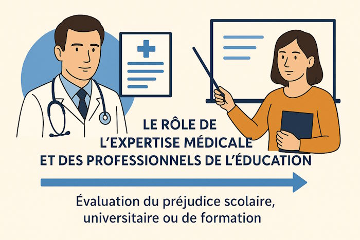 Il n’est pas rare que l’expertise s’appuie aussi sur une évaluation neuropsychologique, notamment lorsque des troubles cognitifs ont été identifiés après un traumatisme crânien. Dans ce cas, l’évaluation portera sur les capacités de concentration, de mémorisation, de raisonnement, ou encore sur l’impact émotionnel du traumatisme. Dans ce cas de l'évaluation neuropsychologique, la démarche d'indemnisation s'appuiera sur l'avis d'un sapiteur médical et même de sapiteurs au sens large, le terme désignant rappelons-le l'avis d'experts de n'importe quelle discipline et pas nécessairement d'une discipline médicale. Ici les sapiteurs pourront être des enseignants, conseillers d’orientation, formateurs ou psychologues scolaires qui pourront être amenés à fournir des attestations utiles pour démontrer la rupture ou la modification du projet éducatif de la victime. Leurs témoignages apportent une vision concrète et humaine des conséquences de l’accident dans le cadre scolaire ou universitaire.